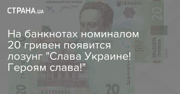 Национальный банк Украины в рамках планового выпуска с сегодняшнего дня вводит в обращение модифицированные банкноты номиналом 20 гривен. В правой верхней части на оборотной стороне обновленных банкнот размещен лозунгом "Слава Украине! Героям слава!".