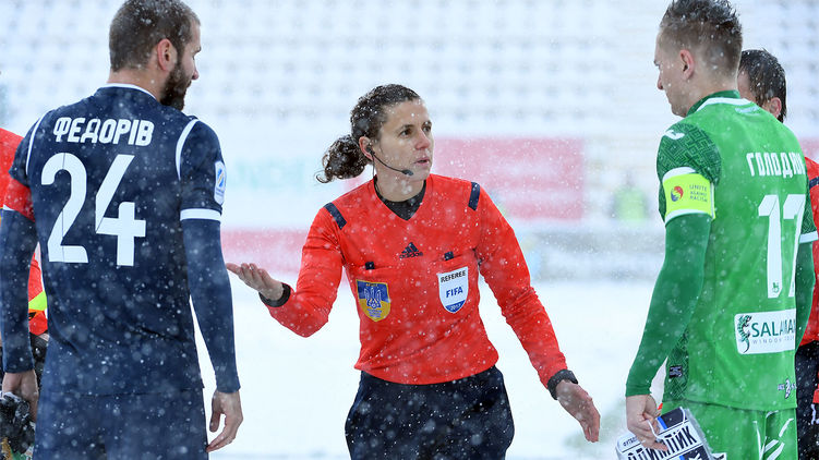 Главный арбитр встречи Екатерина Монзуль принимает непростое решение, фото: УПЛ