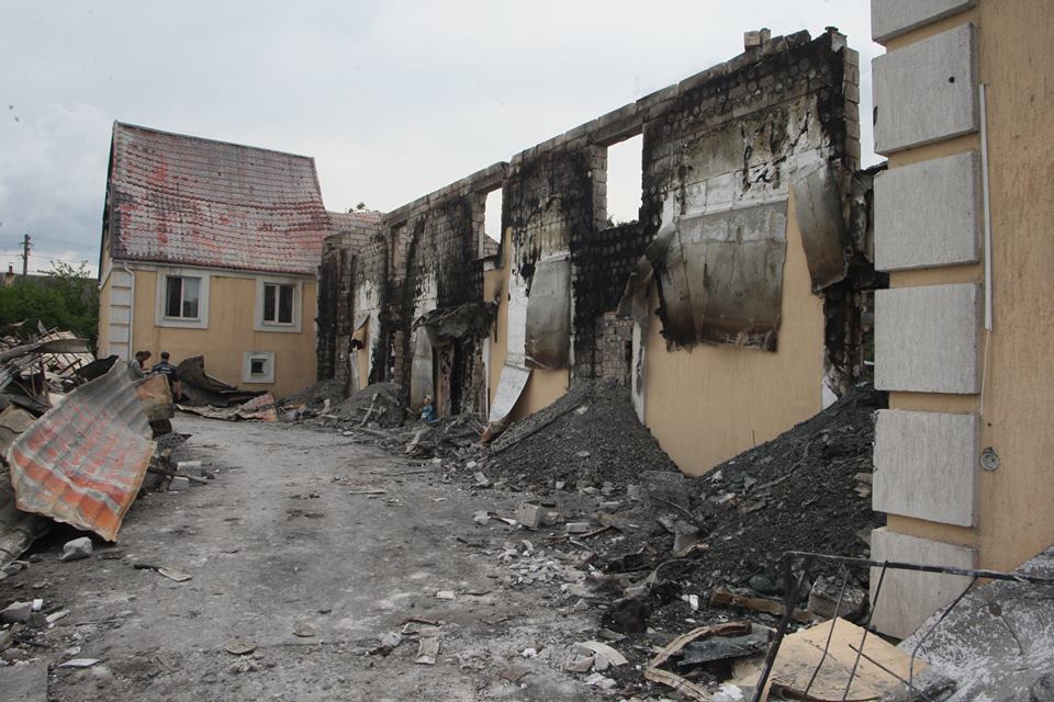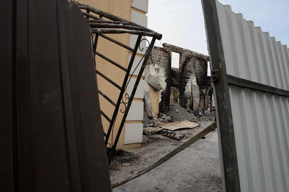 Там, где раньше был двухэтажный частный дом престарелых в селе Литочки, теперь пепелище. Запах гари, цементной пыли и почему-то уйма мошкары… Недалеко от развалин, которые больше напоминают выжженное после минометного обстрела сооружение, истошно кричит петух. Это единственный пернатый, уцелевший после пожара.