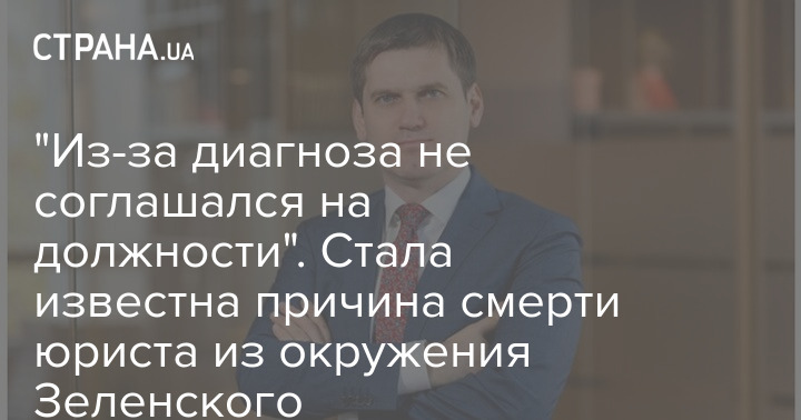 "Из-за диагноза не соглашался на должности". Стала известна причина смерти юриста из окружения Зеленского