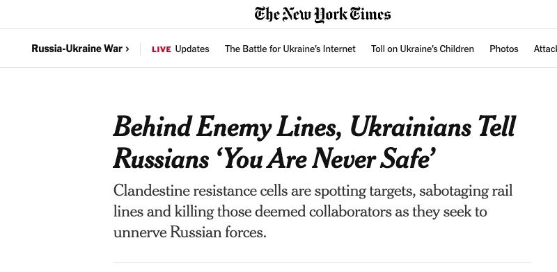 Американская газета The New York Times опубликовала материал о работе украинского подполья в Мелитополе. Журналисты говорят, что пообщались с партизаном с позывным "Сварог".