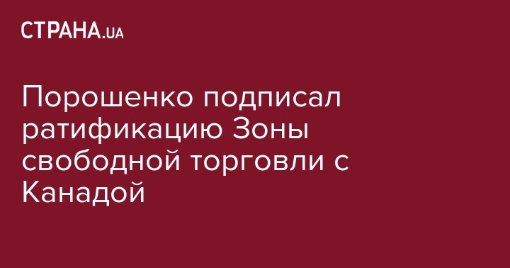 Президент Украины Петр Порошенко подписал закон о ратификации Соглашения о зоне свободной торговли между Украиной и Канадой. Об этом сообщается на странице Администрации президента в Facebook.