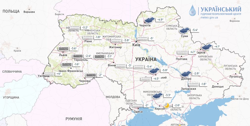 Прогноз погоды на 13 января 2023 года от Укргидрометцентра