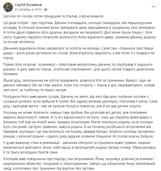 Мы также писали, что на Закарпатье трое подростков изнасиловали 14-летнюю девочку