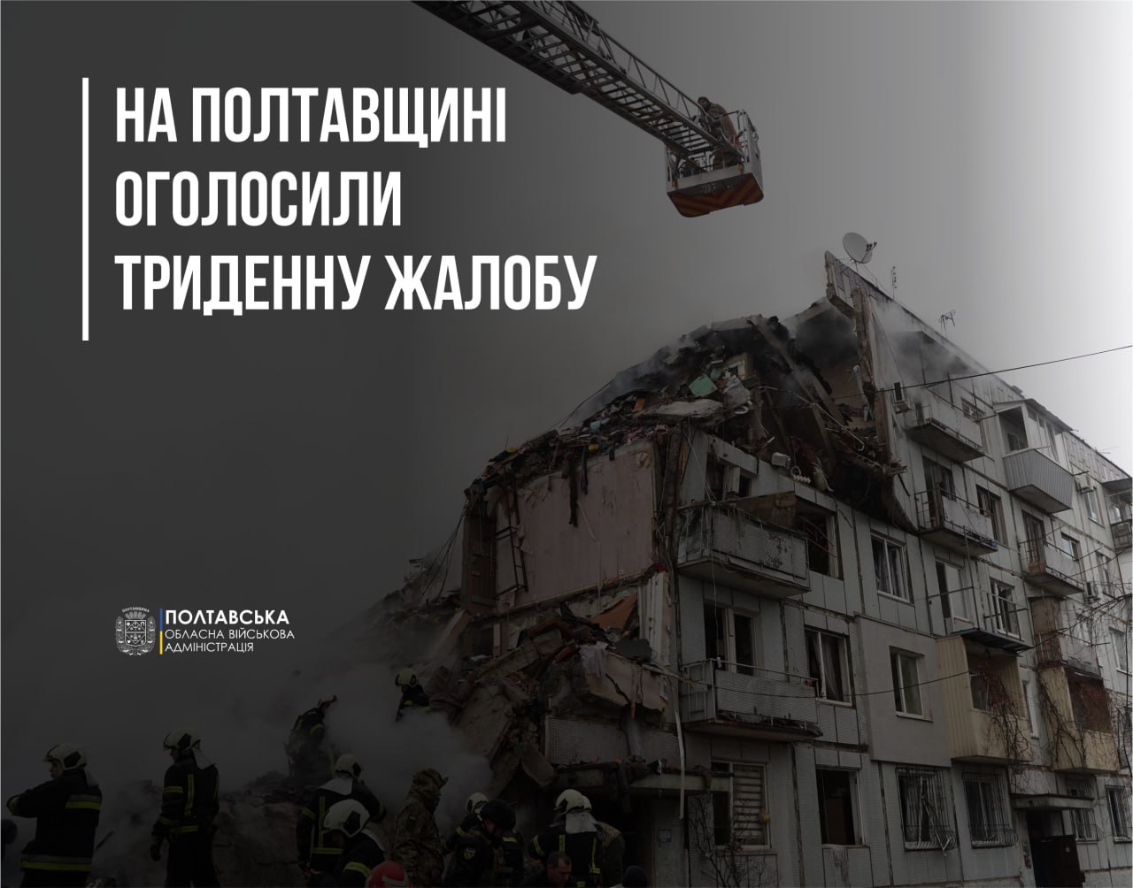 В Полтавской области объявлен трехдневный траур по погибшим в результате вражеской атаки по Полтаве, сообщает ОВА.