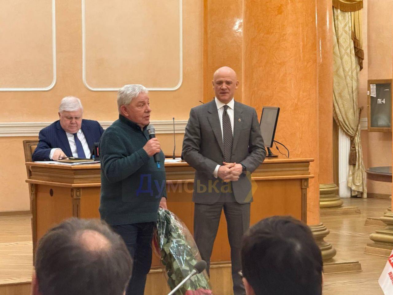 "Вся моя жизнь, начиная с 16 лет, посвящена Одессе. Тут я учился, женился первый раз, потом второй, на этот раз удачно, писал диссертации и покинул свою должность в университете, ушел на телевидение, получил все возможные награды, стал Народным артистом Украины. Я очень благодарен этому опыту в сессионном зале", — заявил Олег Филимонов.