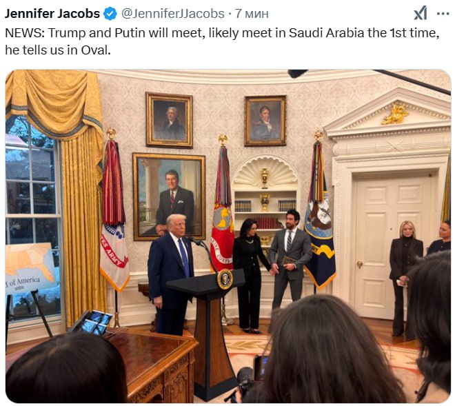 Президент США Дональд Трамп заявил в Овальном кабинете Белого дома, что намерен провести встречу с Владимиром Путиным в Саудовской Аравии.