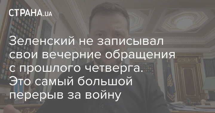 Зеленский не записывал свои вечерние обращения с прошлого четверга. Это самый большой перерыв за войну