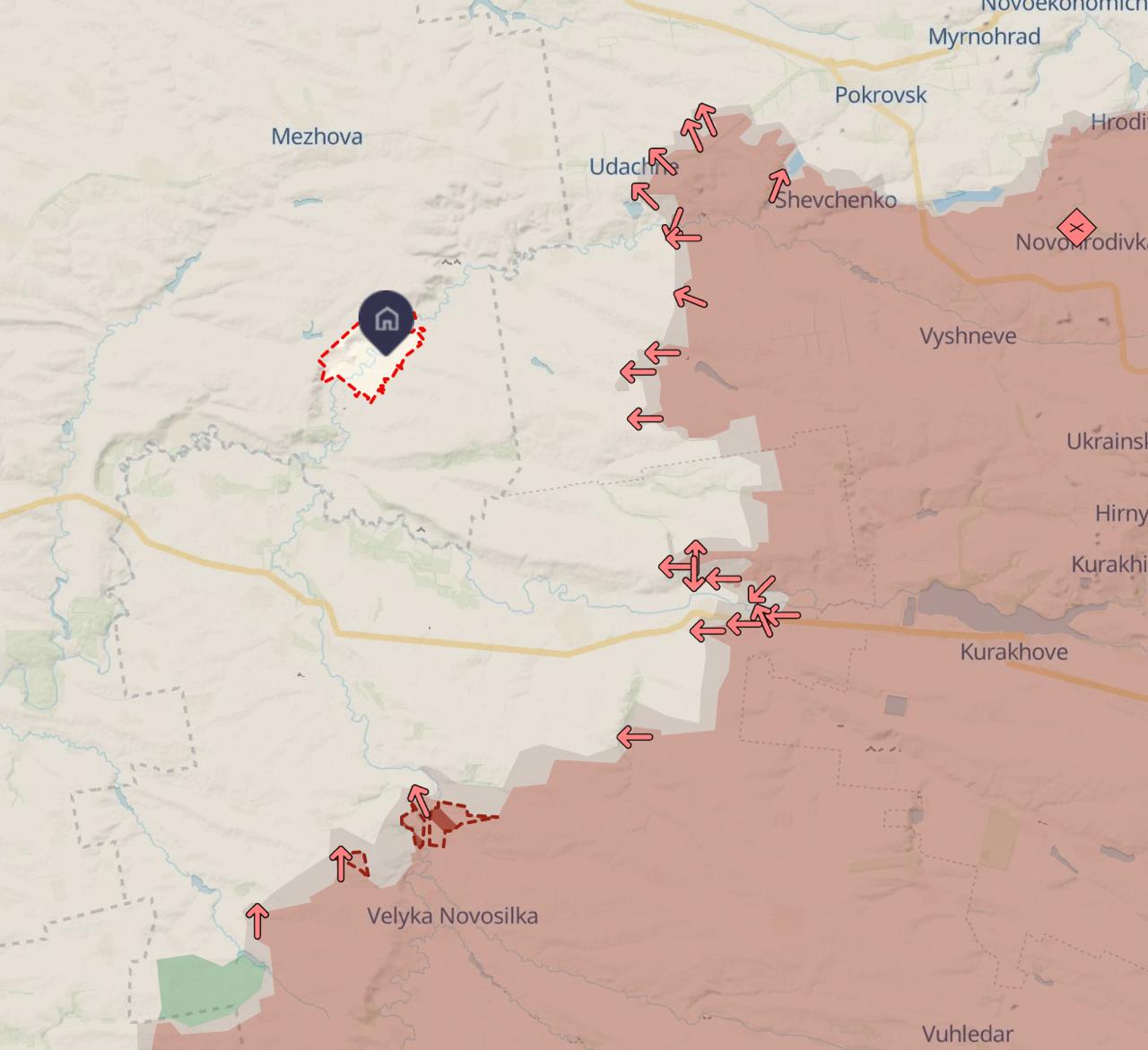 Украина этого не подтверждала. Военный паблик Deep State фиксирует, что северная и восточная окраины деревни под контролем ВСУ. При этом за минувшие сутки россияне продвинулись в Улаклах и контролируют большую часть села.