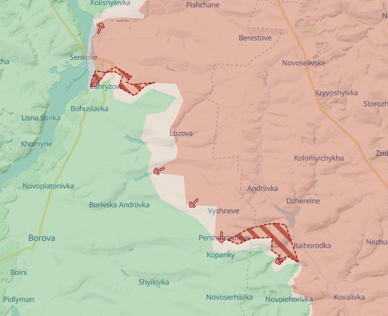 Также у РФ два продвижения в направлении Боровой Харьковской области - у Загрызово и Надежды.