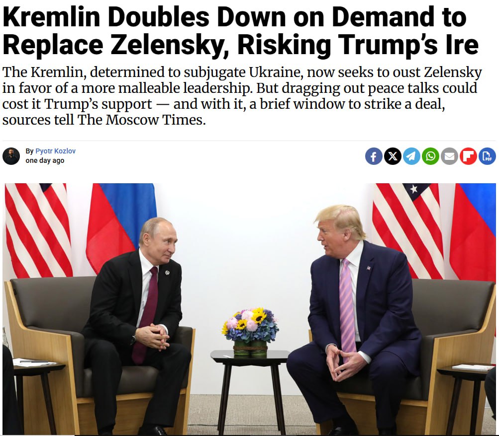 В Кремле хотят заменить Зеленского фигурой, которая будет готова на любые условия России - The Moscow Times