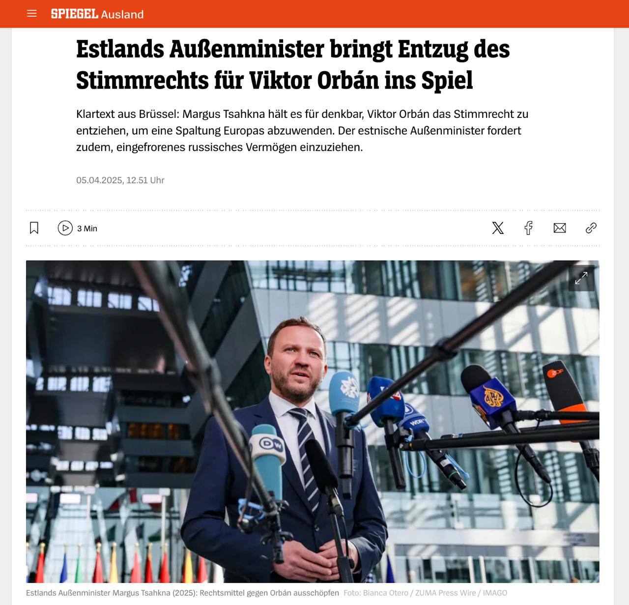 Глава МИД Эстонии призвал Евросоюз конфисковать российские активы и лишить Орбана права голоса