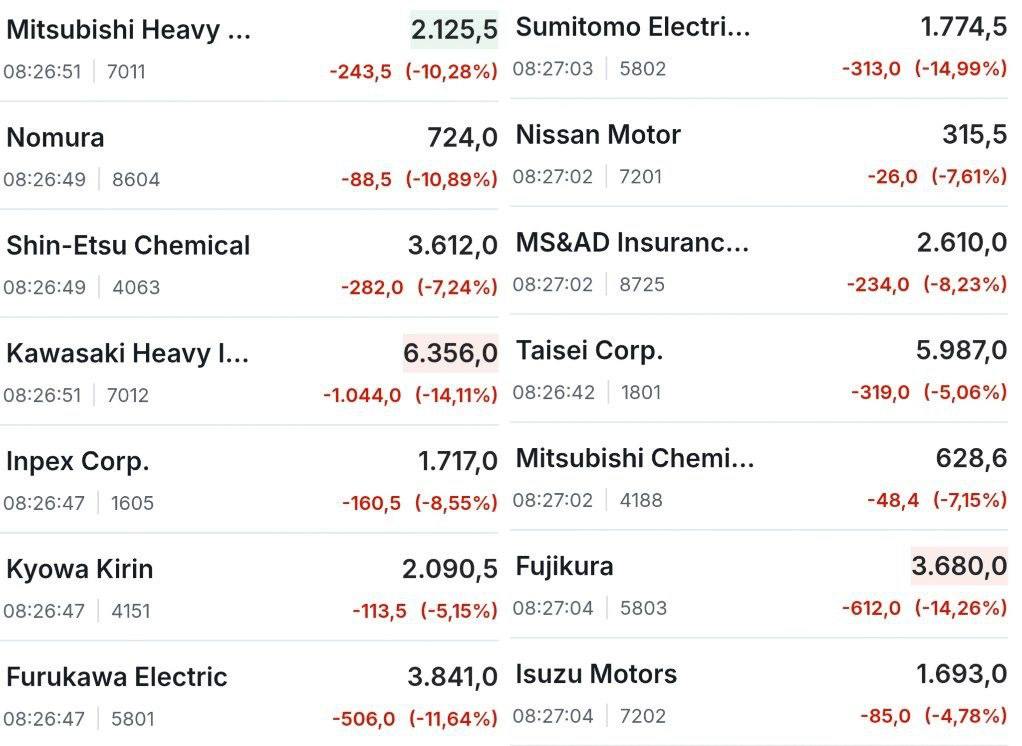 Как пишет Bloomberg, после тарифов президента США Дональда Трампа и ответных действий Китая индекс MSCI Asia Pacific упал на 7,1%, что стало худшим показателем с мирового кризиса 2008 года.