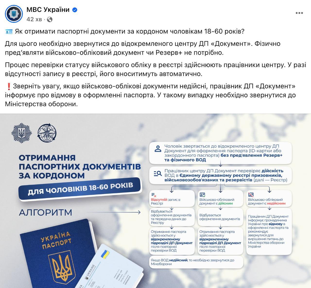 Напомним, 1 апреля Кабинет министров заявил об упрощении процедуры получения паспортов для украинских мужчин от 18 до 60 лет, которые находятся за пределами Украины.