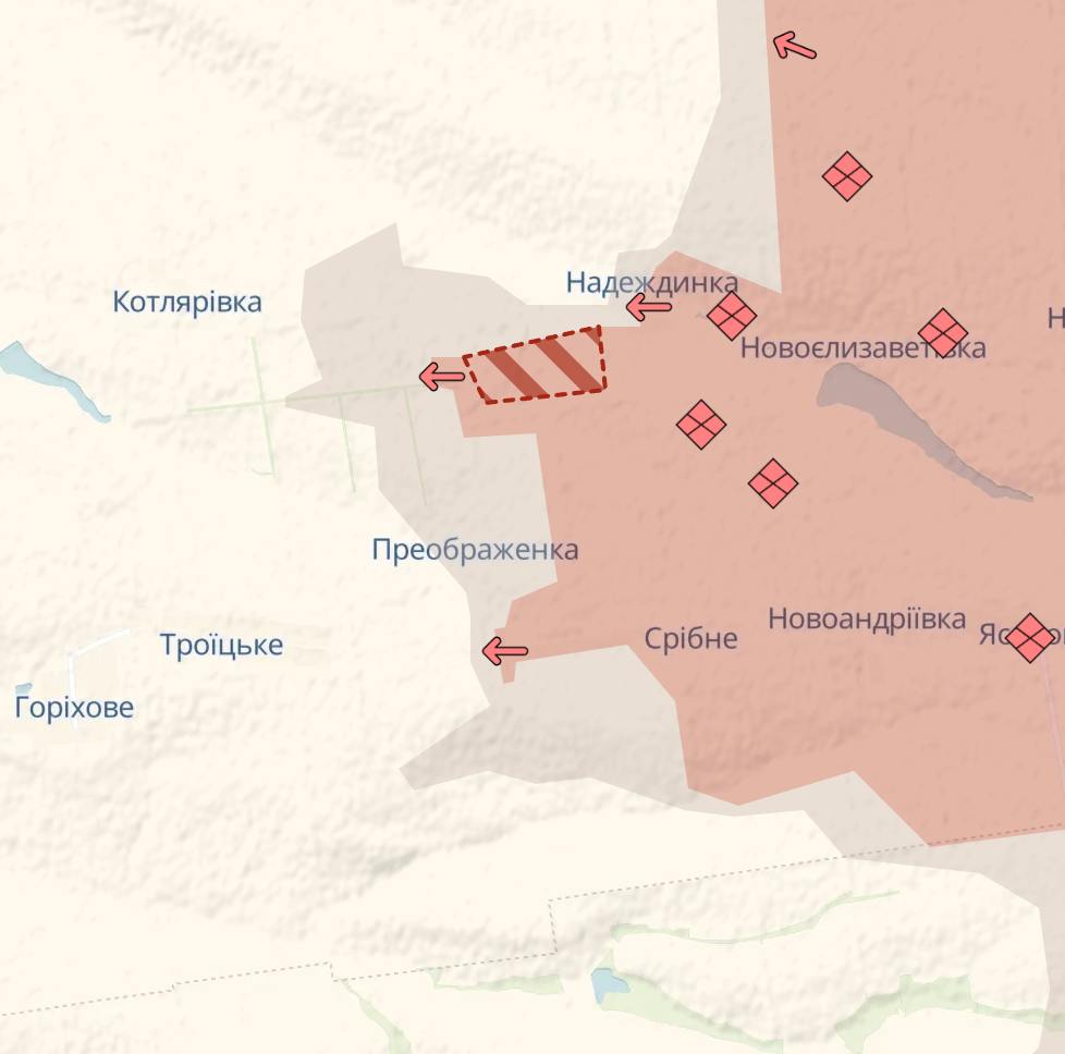 Также россияне, по данным DeepState, продвинулись около Архангельского (восточнее Покровска) и Надеждинки (около границы с Днепропетровской областью).