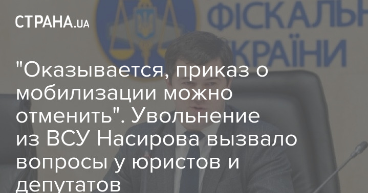 Увольнение из ВСУ обвиняемого в коррупции бывшего главы налоговой службы Романа Насирова вызвало большие вопросы у юристов и депутатов.