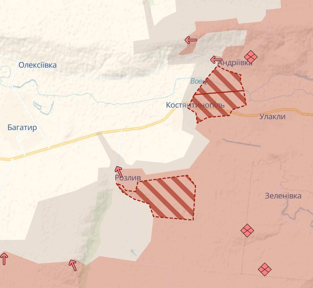 Россияне наступают в Константинополе, что находится на трассе на Запорожье, и южнее - около Разлива.