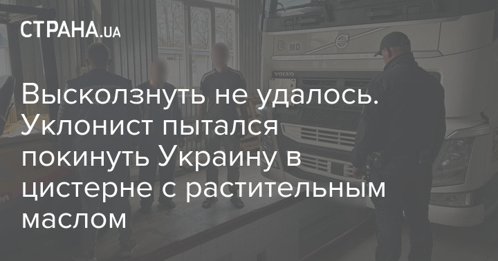 На границе с Молдовой пограничники обнаружили в грузовике цистерну с растительным маслом, а в ней мужчину, который намеревался нелегально выехать из страны.