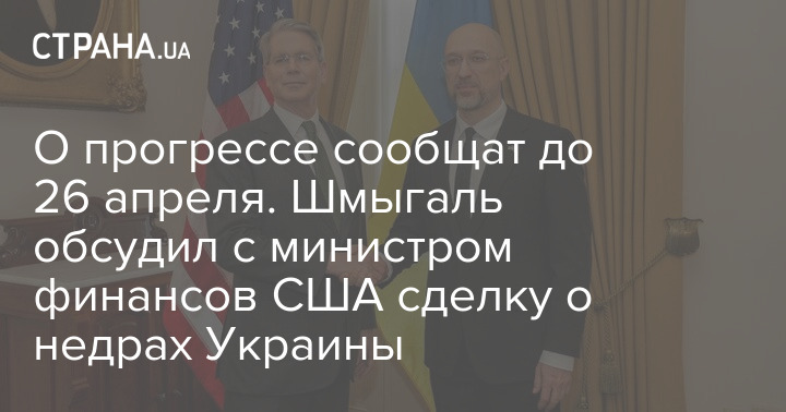 О прогрессе сообщат до 26 апреля. Шмыгаль обсудил с министром финансов США сделку о недрах Украины