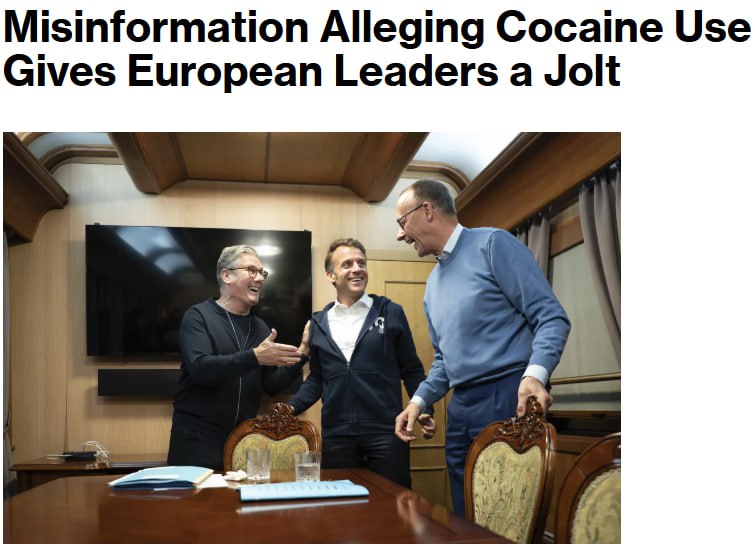 Напомним, на видео при появлении журналистов Макрон убирает в карман поблескивающий предмет, похожий на пакетик с белым порошком, а Мерц - предмет, похожий на мерную ложечку для кокаина. После распространения этих кадров в МИД РФ фактически обвинил европейских политиков в употреблении наркотиков.