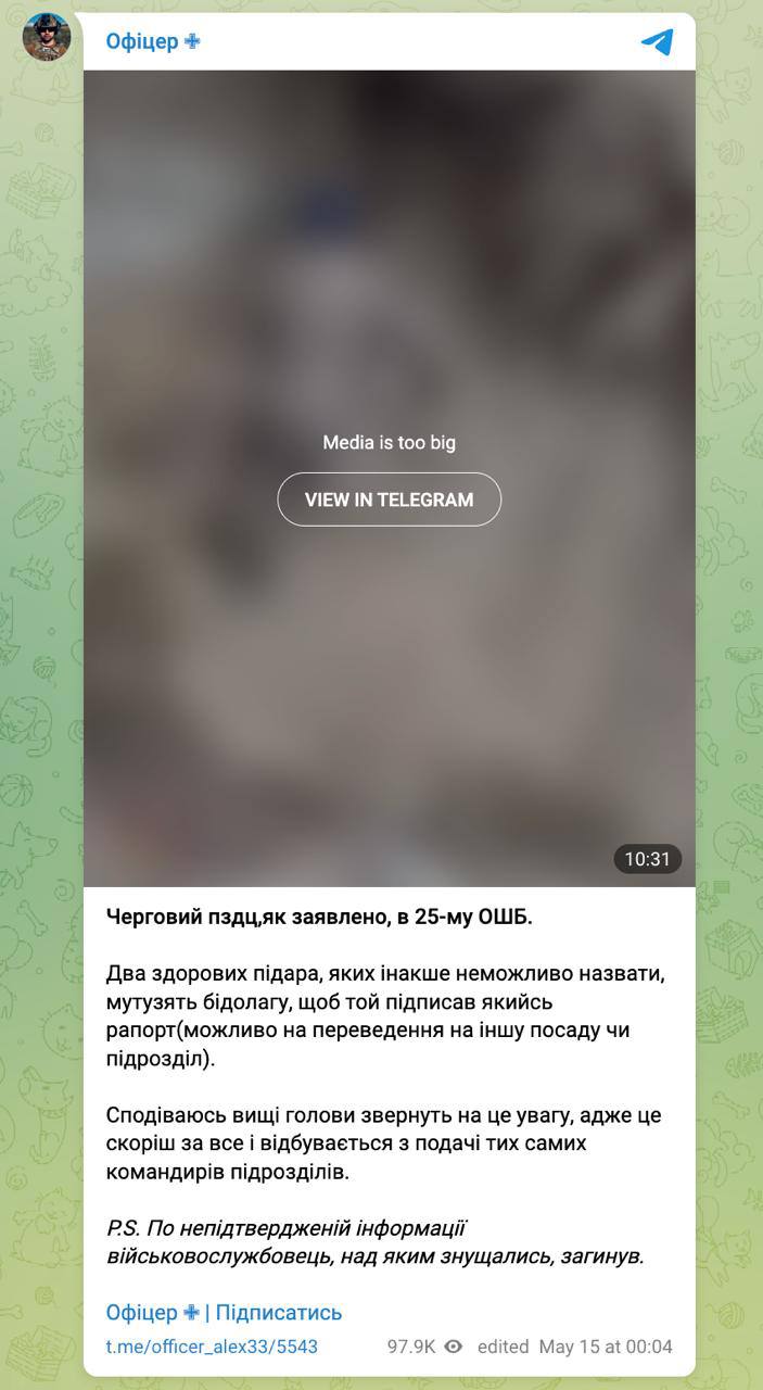 Однако старший лейтенант ВСУ с позывным Алекс в своем телеграм-канале написал, что этот инцидент мог произойти в 25-й отдельной штурмовой бригаде. Он призвал ЦПД дать "более обоснованный ответ, а не просто сослаться на честное слово командования подразделения".