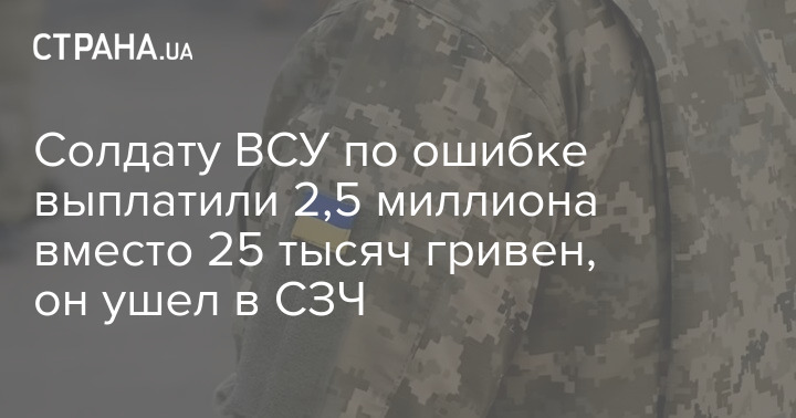 Солдату ВСУ по ошибке выплатили 2,5 млн грн вместо 25 тысяч. Он решил не возвращать деньги и через несколько дней ушел в СЗЧ.