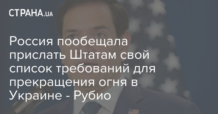 Россия пообещала прислать Штатам свой список требований для прекращения огня в Украине - Рубио