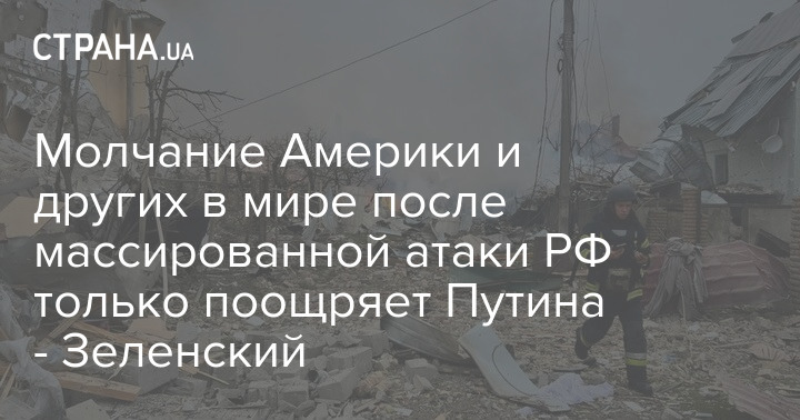 Президент Украины Владимир Зеленский отреагировал на массированную атаку РФ по Украине и заявил, что молчание США и других "только поощряет" Владимира Путина.