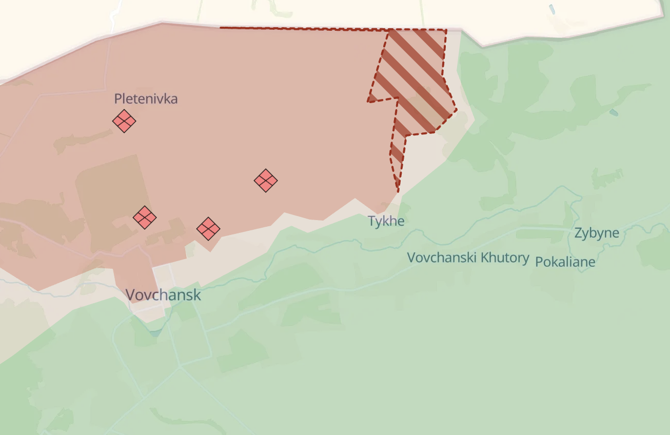 Также на севере, но восточнее "ожил" Волчанский участок. Deep State впервые почти за год фиксирует продвижение россиян к востоку от Волчанска, у села Тихое. О том, что ситуация здесь осложняется, украинские паблики пишут еще с минувшей недели.