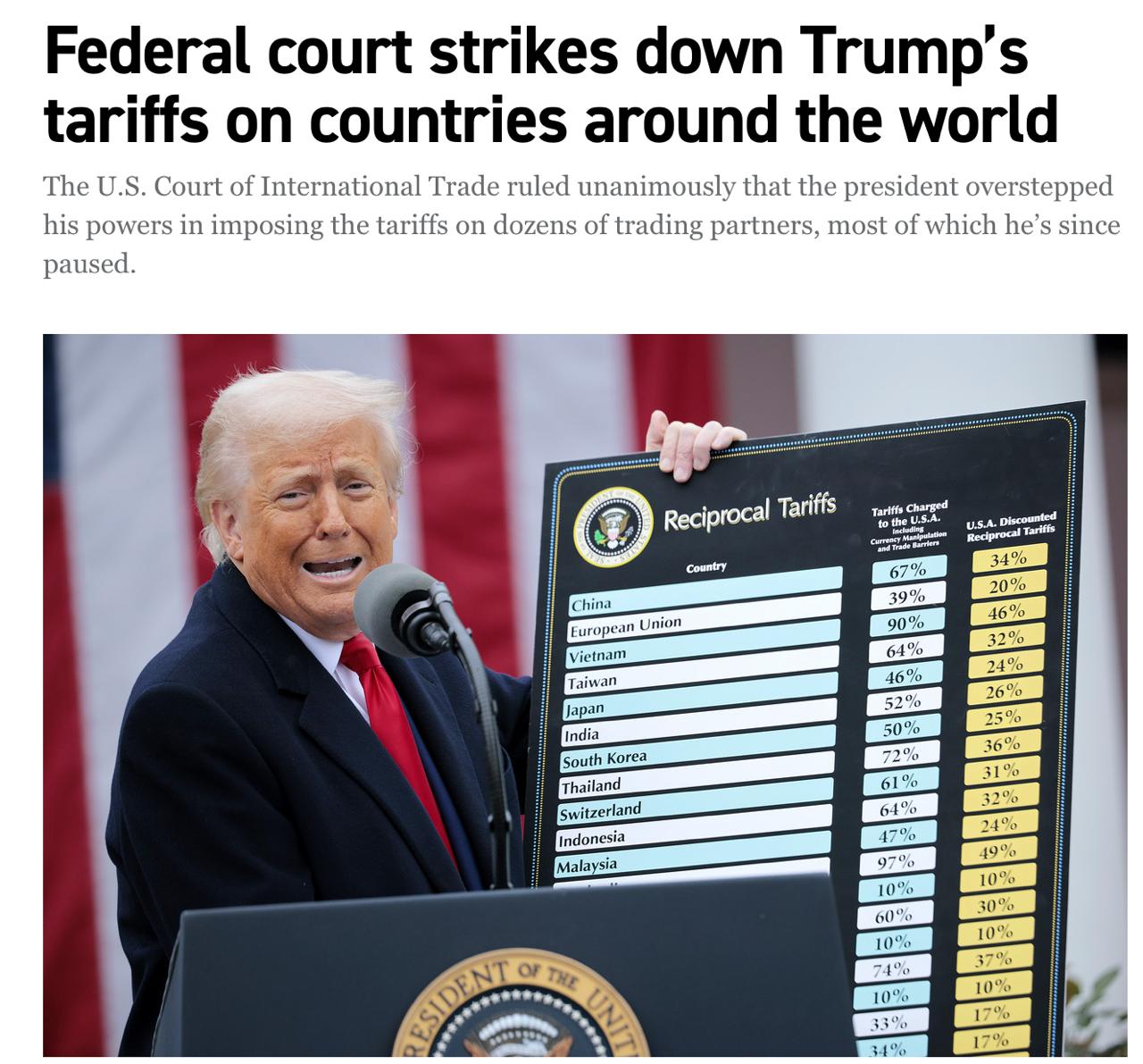 Суд по международной торговле США отменил пошлины, которые президент США Дональд Трамп ввел по всему миру. Судьи единогласно постановили, что президент превысил свои полномочия, введя тарифы в отношении десятков торговых партнеров.