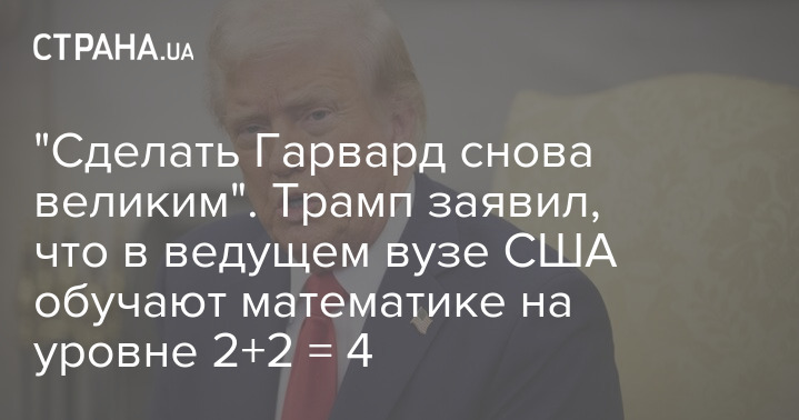 Президент США Дональд Трамп раскритиковал качество учебных программ в Гарвардском университете. По его словам, из математики там преподают сложение на уровне 2+2 = 4, поэтому вуза надо сделать "снова великим".