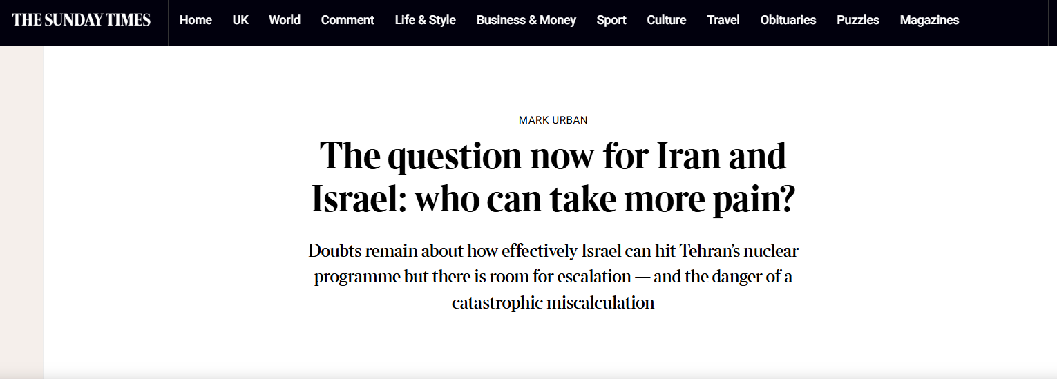 Израиль и Иран вовлечены в борьбу, которая покажет их терпимость к боли и готовность к эскалации - Sunday Times