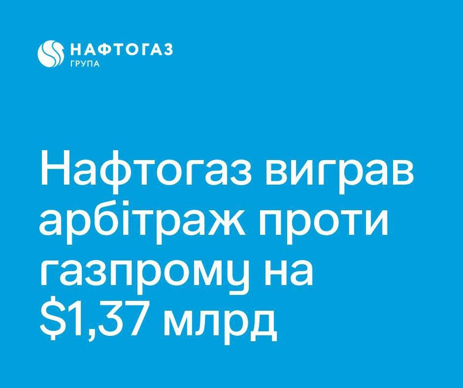 Украинский "Нафтогаз" выиграл Международный стокгольмский арбитраж против российского "Газпрома" на 1,37 млрд долларов.