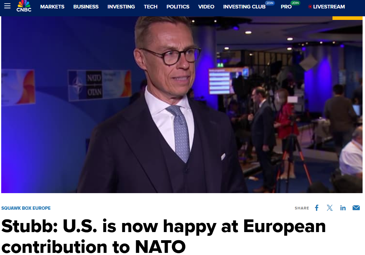 Об этом заявил президент Финляндии Александер Стубб в интервью CNBC.