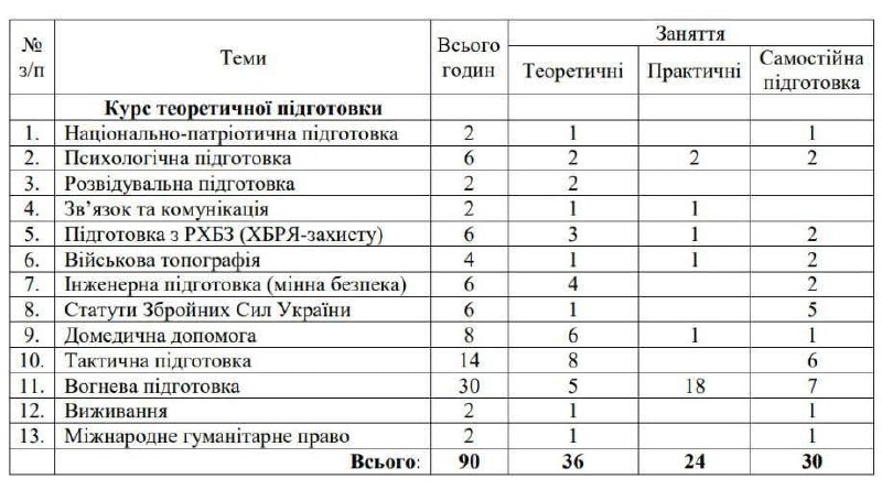 Еще 14 часов будут посвящены тактической подготовке, а 8 часов - домедицинской подготовке.