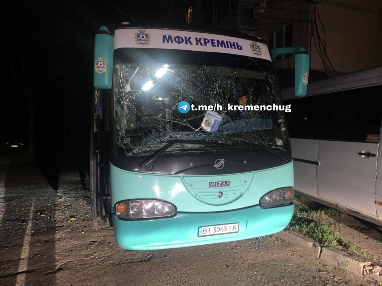 Поврежден автобус футбольные команды "Кремень", больница и ТЦ.