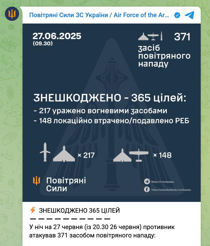 Не удалось сбить или подавить 4 "Шахеда" из 363 и 2 "Кинжала". Все 6 "Калибров" сбили.