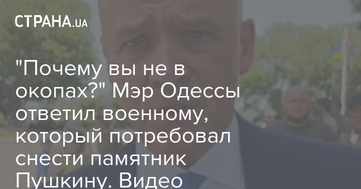 "Почему вы не в окопах?" Мэр Одессы ответил военному, который потребовал снести памятник Пушкину. Видео