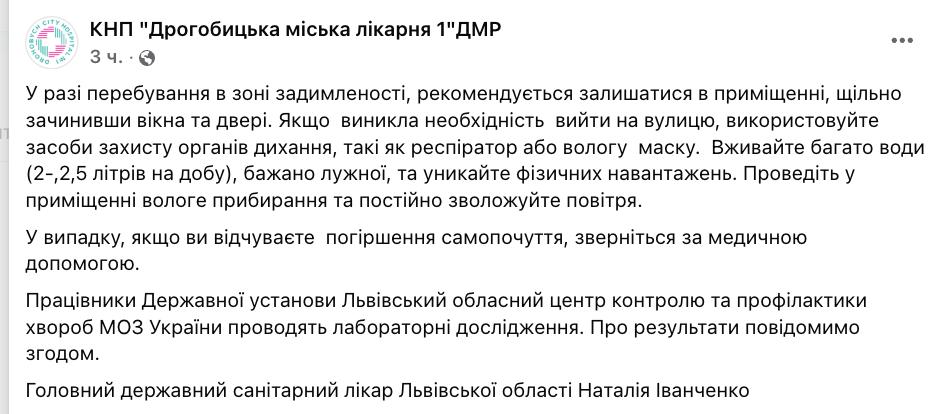13:09 В Дрогобыче советуют закрывать окна и не выходить на улицу из-за дыма после прилетов.