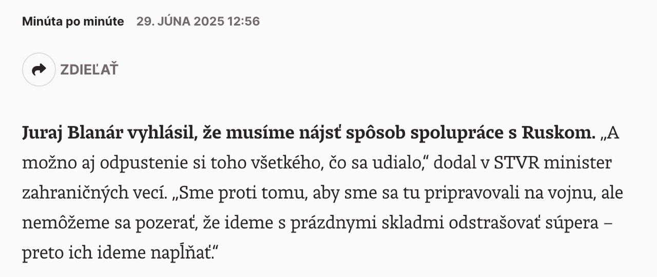 Об этом заявил министр иностранных дел Словакии Юрай Бланар, передает Dennikn.
