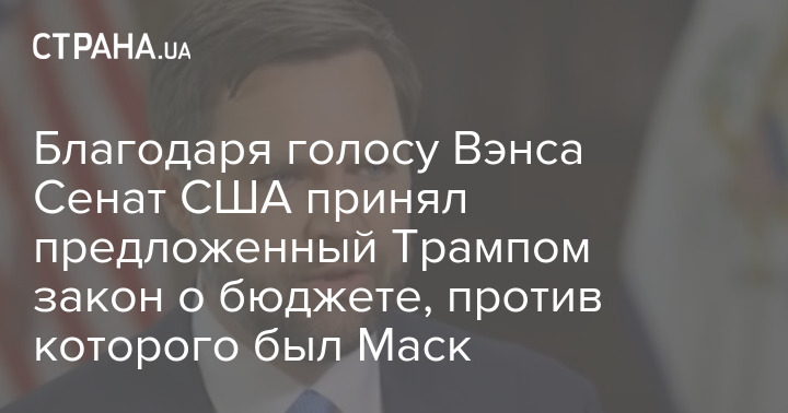 Сенат США одобрил налоговый законопроект главы Белого дома Дональда Трампа "One Big Beautiful Bill" при помощи решающего голоса вице-президента США Джей Ди Вэнса..