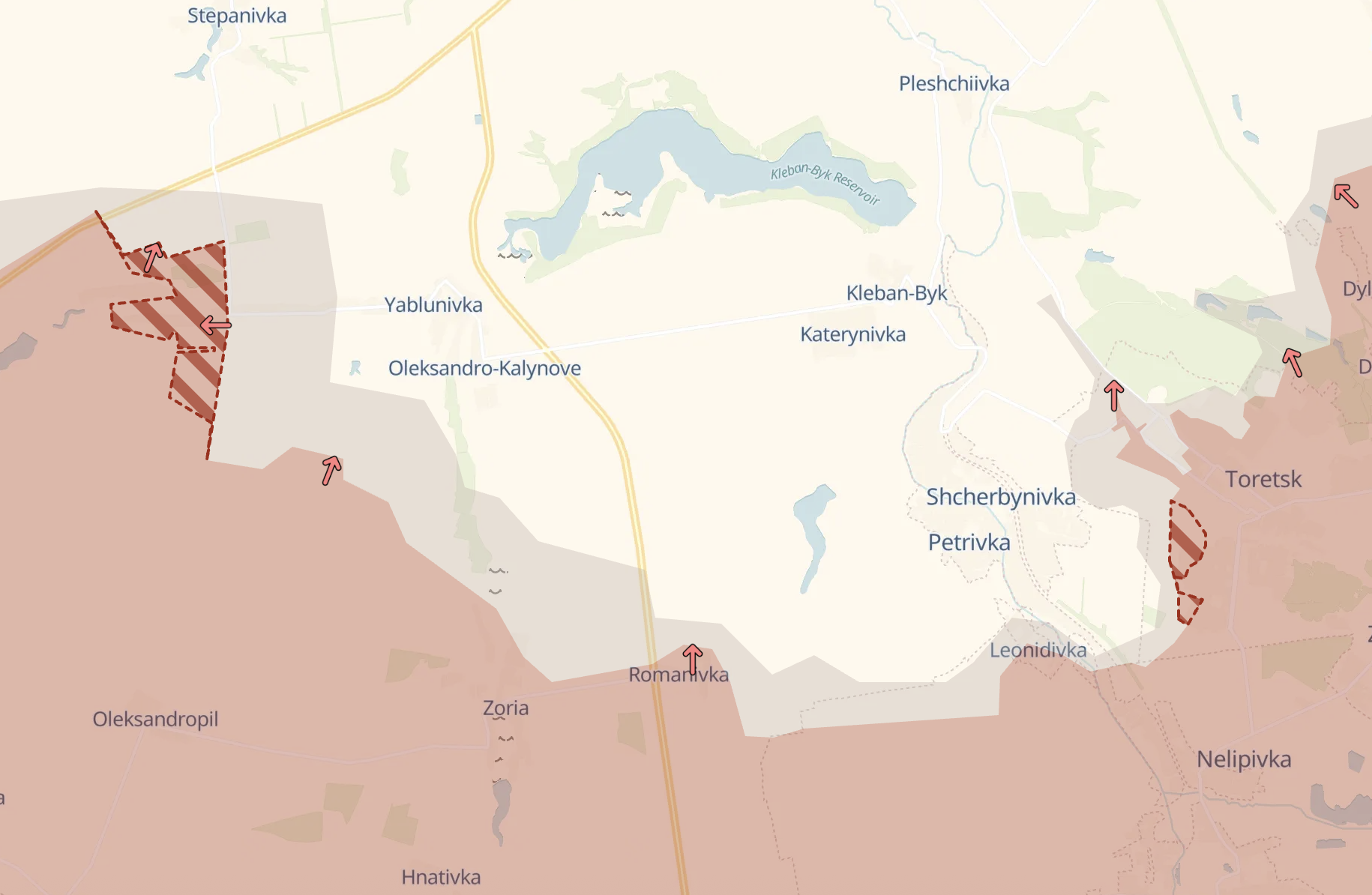 Кроме того россияне заняли новые позиции к югу от Константиновки - под Яблоновкой и Торецком.
