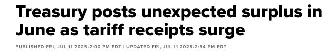 Причиной роста поступлений стали введенные Трампом пошлины - сборы по ним выросли на 301% по сравнению с июнем 2024 года и составили те самые $27 млрд.