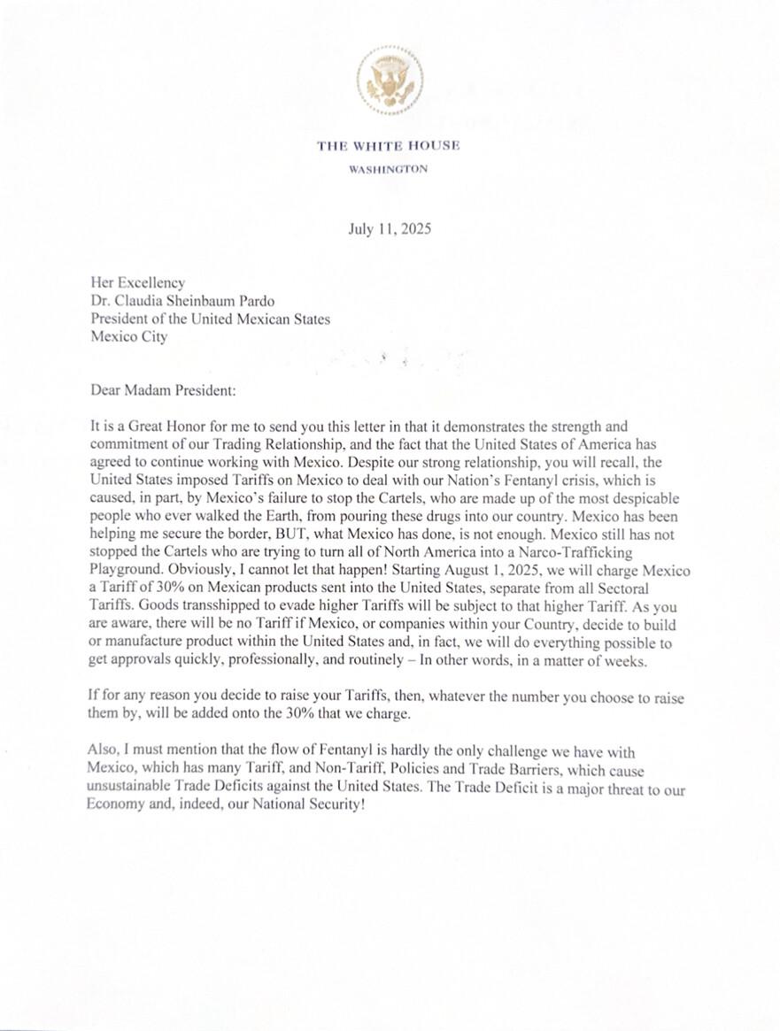 Аналогичный тариф в 30% Соединенные Штаты вводят и против Мексики.