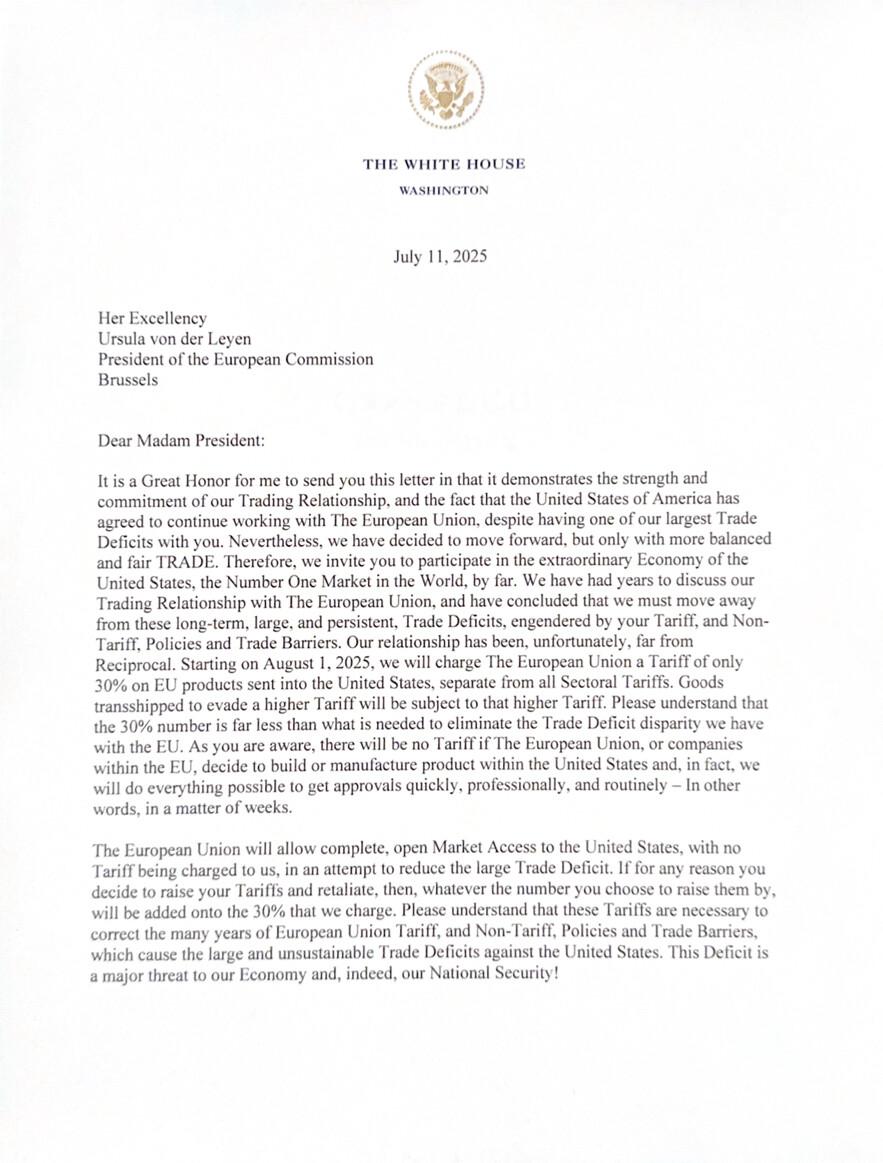 С 1 августа Трамп вводит 30-процентные пошлины против Евросоюза и Мексики