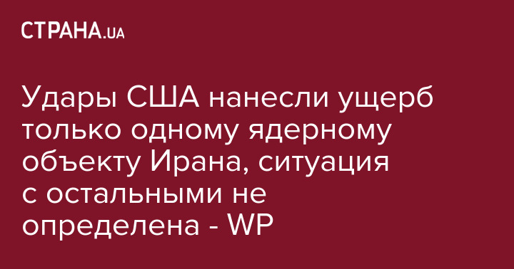 Удары США нанесли ущерб только одному ядерному объекту Ирана, ситуация с остальными не определена - WP