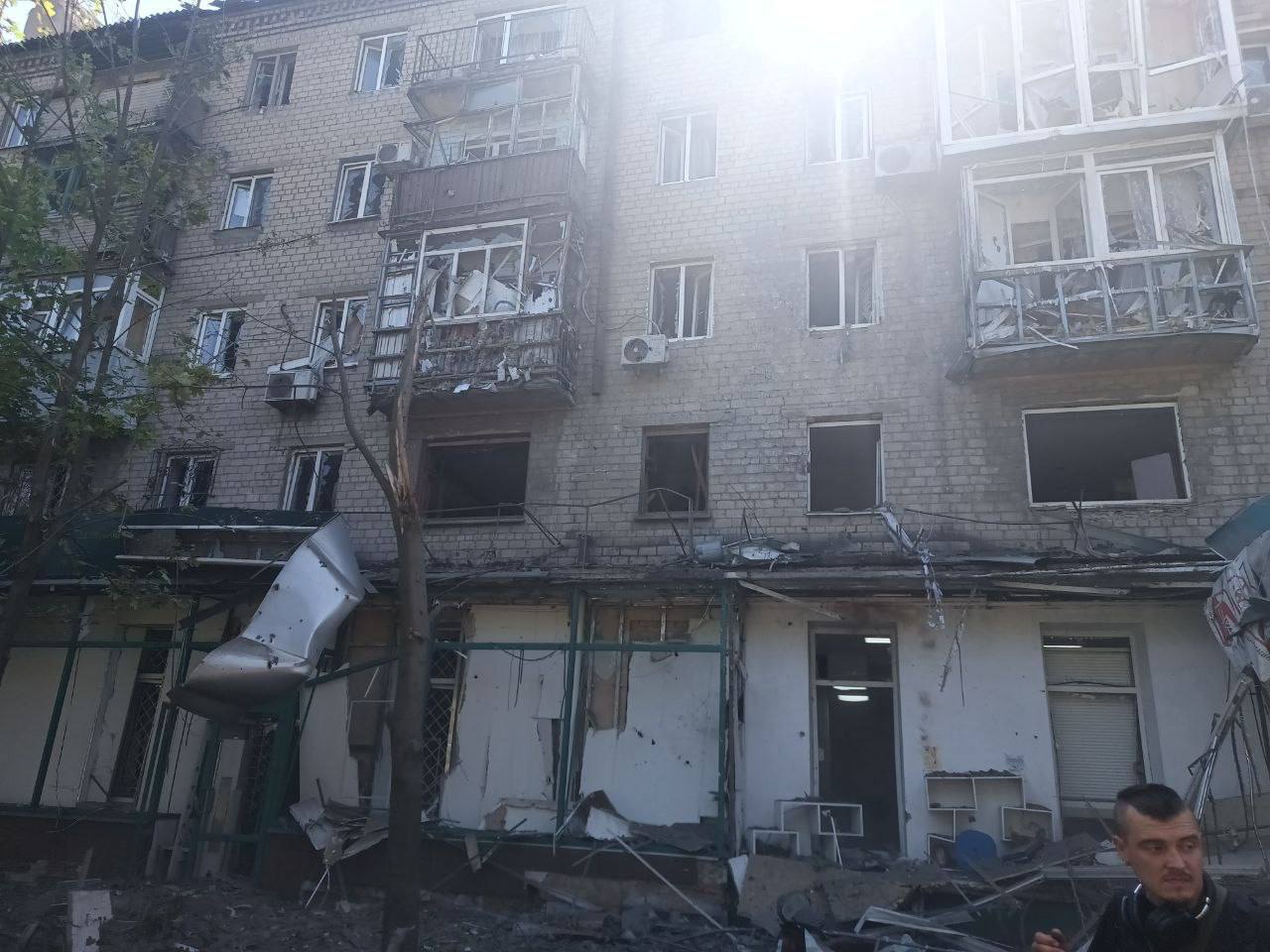 В результате атаки вспыхнул пожар с 6 по 9 этажа 9-этажного жилого дома. Пожар был ликвидирован спасателями, вместе с добровольцами.