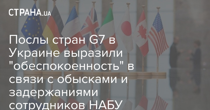 Послы стран G7 в Украине выразили "обеспокоенность" в связи с обысками и задержаниями сотрудников Национального антикоррупционного бюро Украины.