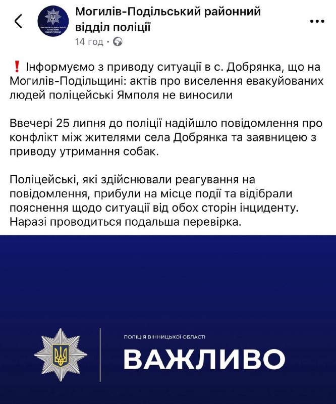 Информация о конфликте поступила в районный отдел полиции Могилев-Подольского района. Сейчас правоохранители проводят проверку в связи с инцидентом.