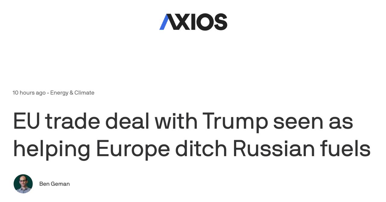 Как уже сообщалось, Евросоюз должен будет закупить у США энергоносители на сумму 750 млрд долларов.